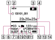 : Όνομα αρχείου: Ημερομηνία_αριθμός αρχείου (π.χ. 130101_001) Όταν γίνεται αναπαραγωγή αρχείου μουσικής ή αρχείου podcast, η ακόλουθη ένδειξη πληροφοριών αλλάζει κάθε πέντε δευτερόλεπτα.