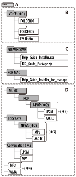 *1 Even if a file is transferred directly under the VOICE folder, it will not be displayed in “