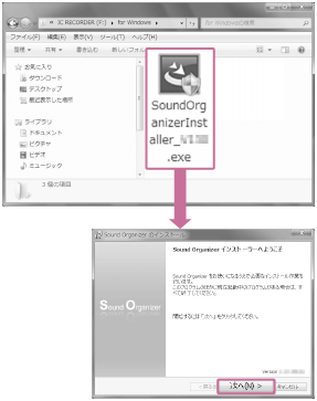 - [SoundOrganizerInstaller_V140](または[SoundOrganizerInstaller_V140.exe])をダブルクリックする。