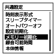各種設定」 - 「共通設定」 - 「メモリー初期化」を選び、