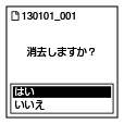 「消去しますか?」と表示され、確認のため、選んだファイルが再生されます。 -