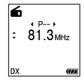 周波数のスキャンが始まり、放送を受信すると自動的に停止します。 - FMラジオを止めるには