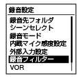 - 「外部入力設定」が「Audio IN」に設定されているときやFMラジオ録音中は、録音フィルター機能は働きません。