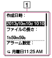 - 作成日時: ファイルの録音日時(年(y)月(m)日(d)/時刻)を表示します。