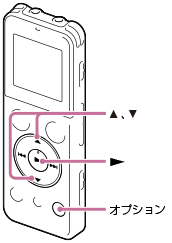 オプションボタンを押すと、ICレコーダーの各機能に応じたオプションメニューが表示され、設定の変更などができます。