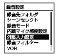 各種設定」 - 「録音設定」 - 「外部入力設定」を選び、