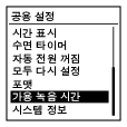 설정" - "공용 설정" - "가용 녹음 시간"을 선택한 다음