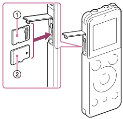 - Если карту памяти не удалось распознать, извлеките ее, а затем снова вставьте в цифровой диктофон.