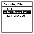 для выбора “NCF(Noise Cut)” или “LCF(Low Cut)”, затем нажмите