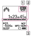 REC/PAUSE för att pausa inspelningen när ”VOR” är inställt på ”ON” i menyn blinkar bara ”