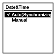 När du väljer ”Auto(Synchronizing)” justeras klockan automatiskt med klockan i datorn som är ansluten till IC-inspelaren och på vilken Sound Organizer-programvaran startar.