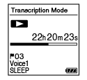 - När den inställda tidslängden för sömnlägestimer har gått stängs IC-inspelaren av automatisk även om uppspelningsläget för transkribering är aktivt.
