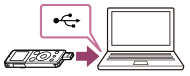 - Якщо підключити цифровий диктофон до не увімкненого комп’ютера, батарея не заряджатиметься. Навіть якщо комп’ютер увімкнуто, але він перебуває в режимі скороченої функціональності (режимі очікування або сну), батарею заряджати не можна.