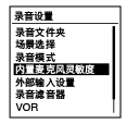 可以设置内置话筒的话筒灵敏度。在开始录音前设置该菜单项目。