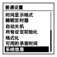 可以查看IC录音机型号和软件版本号等系统信息。可以使用Sound Organizer软件在IC录音机上记录用户名。