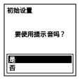 首次插入电池时,设定时钟后会显示提示音设置窗口,您可以选择开启或关闭操作提示音。