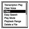 - Lorsque la lecture est en cours ou en veille, sélectionnez « Effect » dans le menu OPTION puis appuyez sur