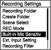 Settings » - « Recording Settings » - « Built-in Mic Sensitivity » dans le menu HOME, puis appuyez sur