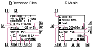Recorded Files”)Indica os níveis de volume de áudio gravado do ficheiro que está a reproduzir.