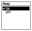 para selecionar “ON” ou “OFF” para ligar ou desligar o sinal sonoro e, de seguida, prima