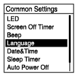 Settings” - “Common Settings” - “Language” no menu HOME e, de seguida, prima