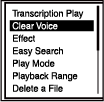 - Com a reprodução em suspensão ou em curso, selecione “Clear Voice” no menu OPTION e, de seguida, prima