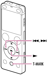 - Com a gravação em curso ou em pausa ou com a reprodução em curso ou em suspensão, prima T-MARK no ponto ao qual pretende adicionar uma marca de faixa.