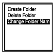 para selecionar a pasta cujo nome pretende alterar. - Selecione “Change Folder Name” no menu OPTION e, de seguida, prima