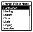 Pode alterar o nome das pastas para armazenar os ficheiros que grava com o gravador de IC ao selecionar um nome de pasta do modelo.