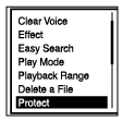 “Protected” aparece no visor e o ficheiro é protegido. Quando reproduz o ficheiro protegido, o indicador