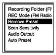 repetidamente para sintonizar a estação de rádio FM da atribuição de número predefinido (PXX) que pretende apagar, por exemplo, “P01”. - Selecione “Remove Preset” no menu OPTION e, de seguida, prima