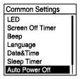 Settings” - “Common Settings” - “Auto Power Off” no menu HOME e, de seguida, prima