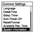 Settings” - “Common Settings” - “System Information” no menu HOME e, de seguida, prima