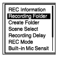 - Com a gravação em suspensão, selecione “Recording Folder” no menu OPTION e, de seguida, prima