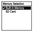para selecionar “Built-In Memory” ou “SD Card” e, de seguida, prima