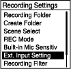 - Вы также можете выбрать тип аудиовхода уровень чувствительности внешнего микрофона, выбрав “Ext. Input Setting” в меню OPTION во время ожидания воспроизведения.