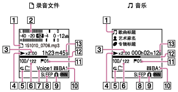 - 上面所示的画面用于说明目的。它们可能与在IC录音机上实际看到的画面有所不同。