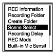 - 在录音待机状态下,从OPTION菜单中选择“Scene Select”,然后按