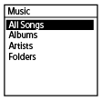 - يتم سرد ملفات الموسيقى في المجلد المختار.