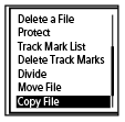 بينما يكون الاستماع في وضع الاستعداد، اختر [Copy File] في قائمة OPTION، ثم اضغط