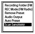 بينما تستمع إلى راديو FM، اختر [Scan Sensitivity] في قائمة OPTION، ثم اضغط