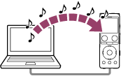 يمكنك نسخ ملفات موسيقى وصوت LPCM (.wav) / MP3 (.mp3) / WMA (.wma) / AAC-LC (.m4a) من كمبيوتر إلى مسجل IC بطريقة السحب والإفلات.