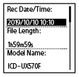 Μπορείτε να δείτε τις πληροφορίες (διάρκεια αρχείου, λειτουργία εγγραφής, ημερομηνία και ώρα εγγραφής, κτλ.) σχετικά με το εγγεγραμμένο αρχείο που επιλέξατε.