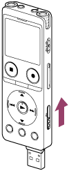 Αποσυνδέστε τη συσκευή ψηφιακής εγγραφής από τη θύρα USB του υπολογιστή και μετακινήστε τον μοχλό USB στο πλάι της συσκευής ψηφιακής εγγραφής προς τα πάνω για να συμπτύξετε τη σύνδεση USB.