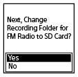 Αν εμφανιστεί η ένδειξη [Next, Change Recording Folder for FM Radio to SD Card?] (μόνο ICD-UX570F), επιλέξτε [Yes].