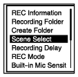 Ανάλογα με τις συνθήκες εγγραφής, μπορείτε να αλλάξετε ταυτόχρονα ορισμένες ρυθμίσεις της εγγραφής, όπως η λειτουργία εγγραφής και το επίπεδο ευαισθησίας των ενσωματωμένων μικροφώνων, επιλέγοντας μία από τις σκηνές εγγραφής (Scene Select).