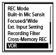 Κατά τη διάρκεια συγχρονισμένης εγγραφής και της εγγραφής ραδιοφώνου FM (μόνο ICD-UX570F), η λειτουργία VOR δεν λειτουργεί.