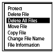 Επιλέξτε [Delete All Files] ή [Delete All in List] στο μενού OPTION και, στη συνέχεια, πατήστε