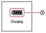 Se ligar o transformador de CA USB e desligar a corrente, aparece o indicador de carga da bateria (
