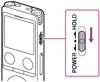 Când reportofonul digital este adus în starea HOLD, dacă se apasă orice buton, în fereastra de afișare apare [HOLD Switch Is On. Slide HOLD Switch to Activate.].